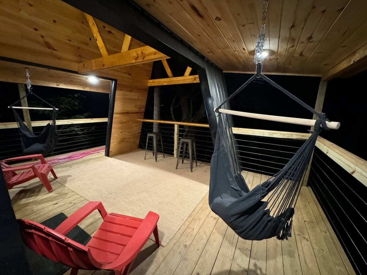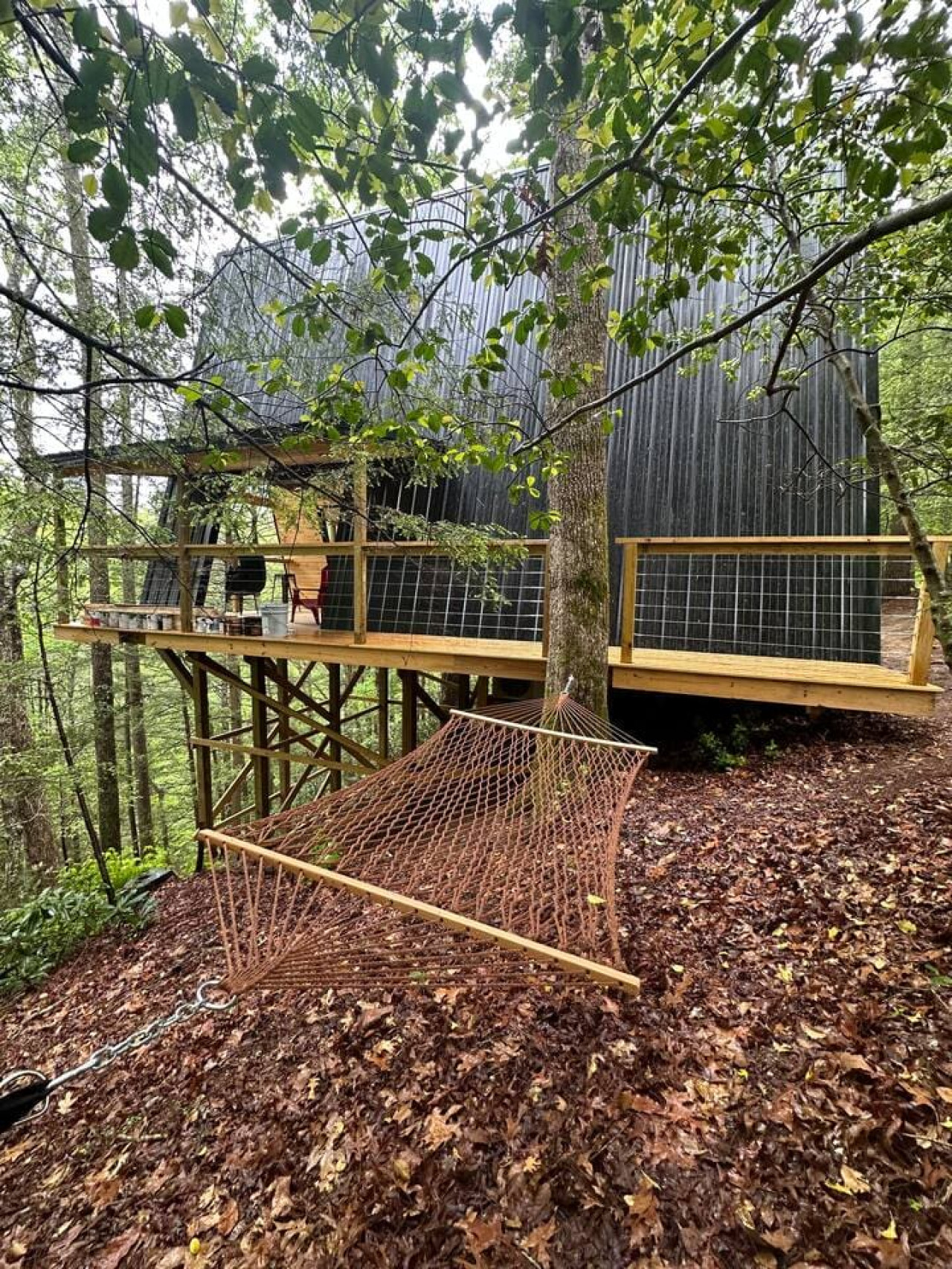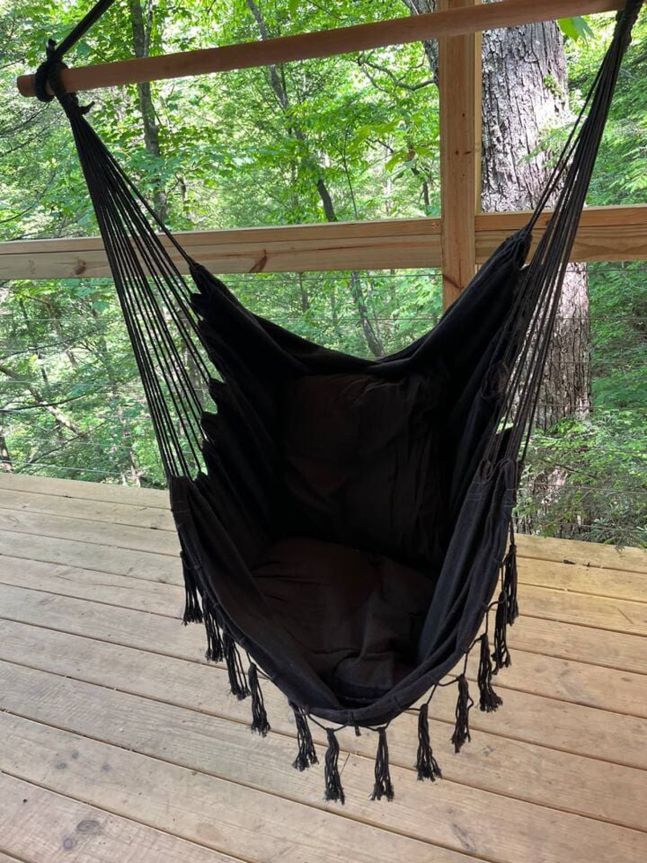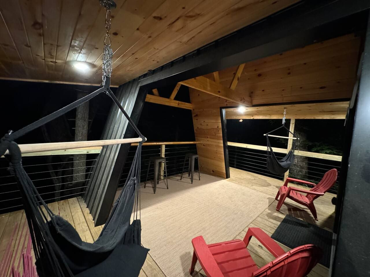 Wolf Pup is an adult-only, gorgeous black A-frame with a kitchenette, living space and queen bed in the loft area. Perfect for 2 to create memories that you will never forget! This modern cottage has heating and AC in the onsite mini split unit as well as cold water in the kitchenette. The cottage also contains a microwave, Keurig coffee pot, mini fridge and TV. The back deck is the most captivating amenity as it boasts a hammock net that puts you right up in the treetops!