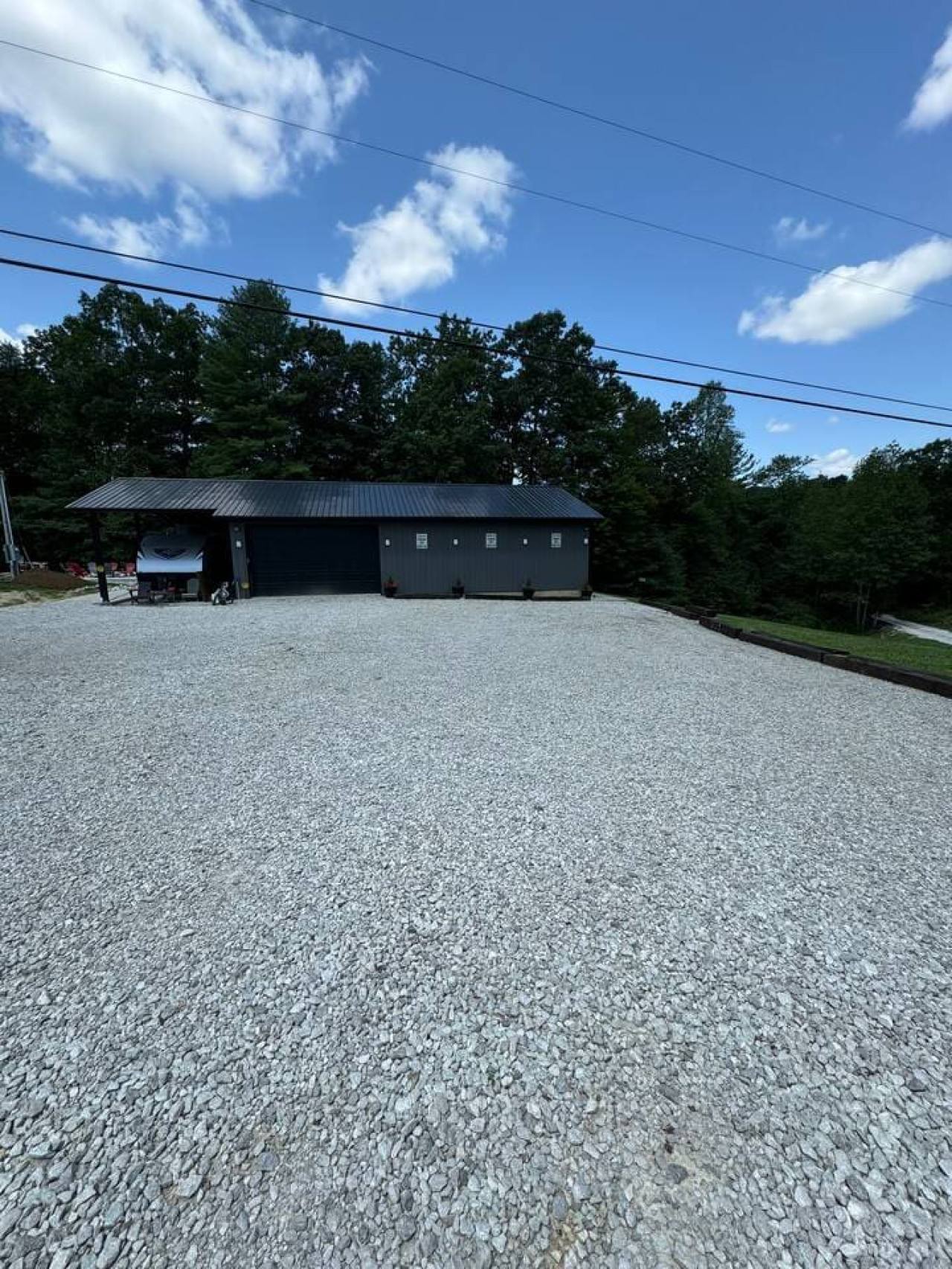 Gravel driveway and walking path leading to cabin. There are dedicated parking spots directly in front of garage about 50 yards from cabin.