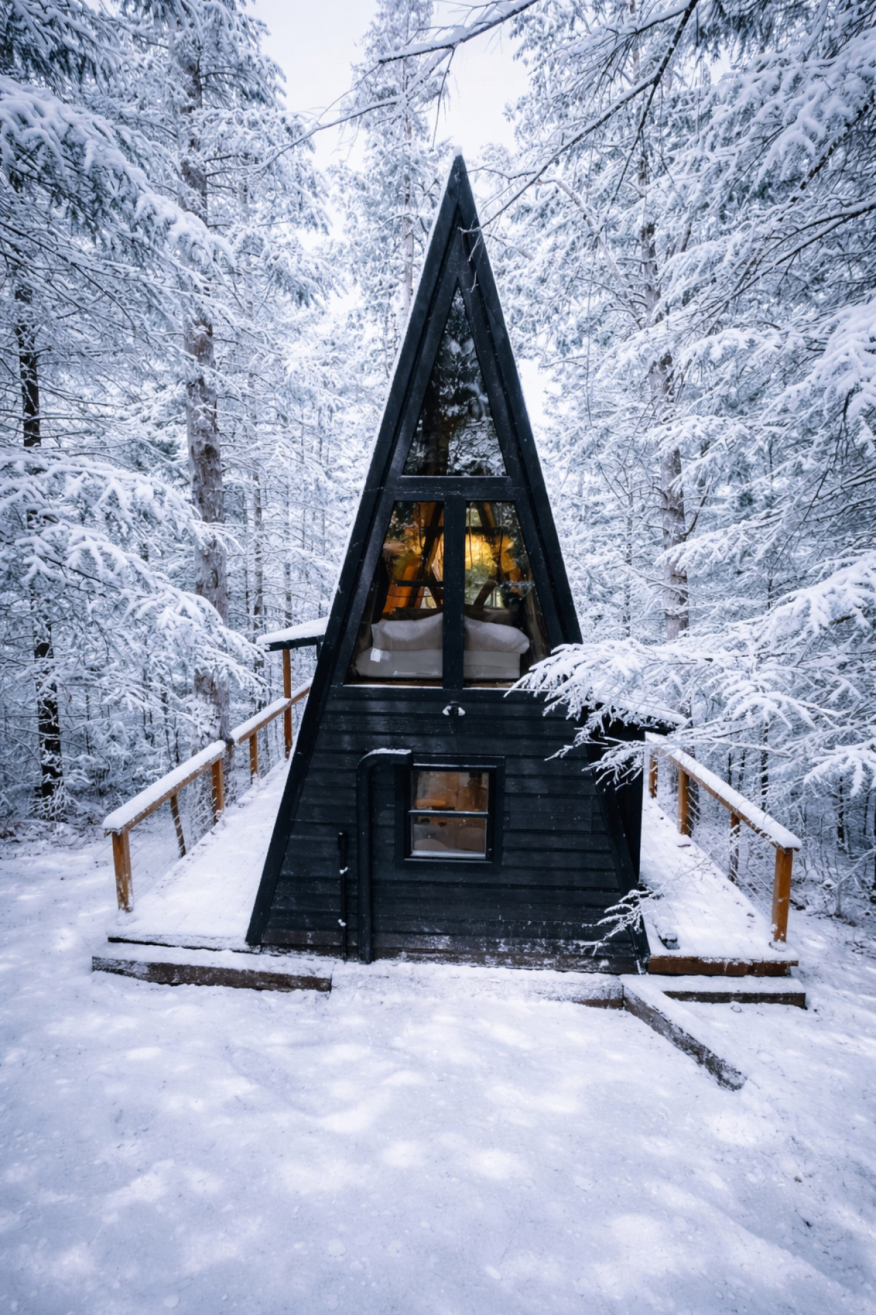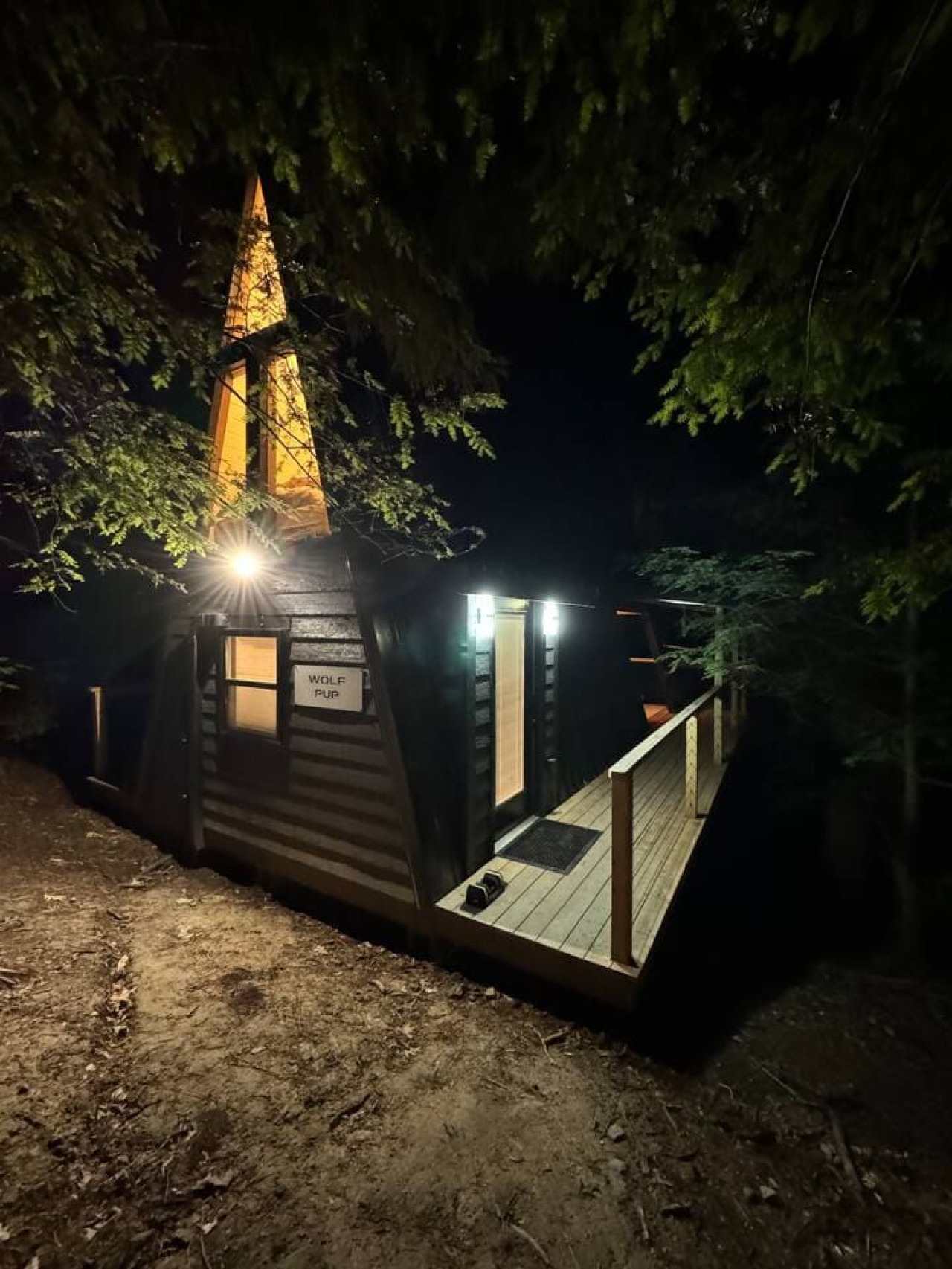 Wolf Pup is an adult-only, gorgeous black A-frame with a kitchenette, living space and queen bed in the loft area. Perfect for 2 to create memories that you will never forget! This modern cottage has heating...