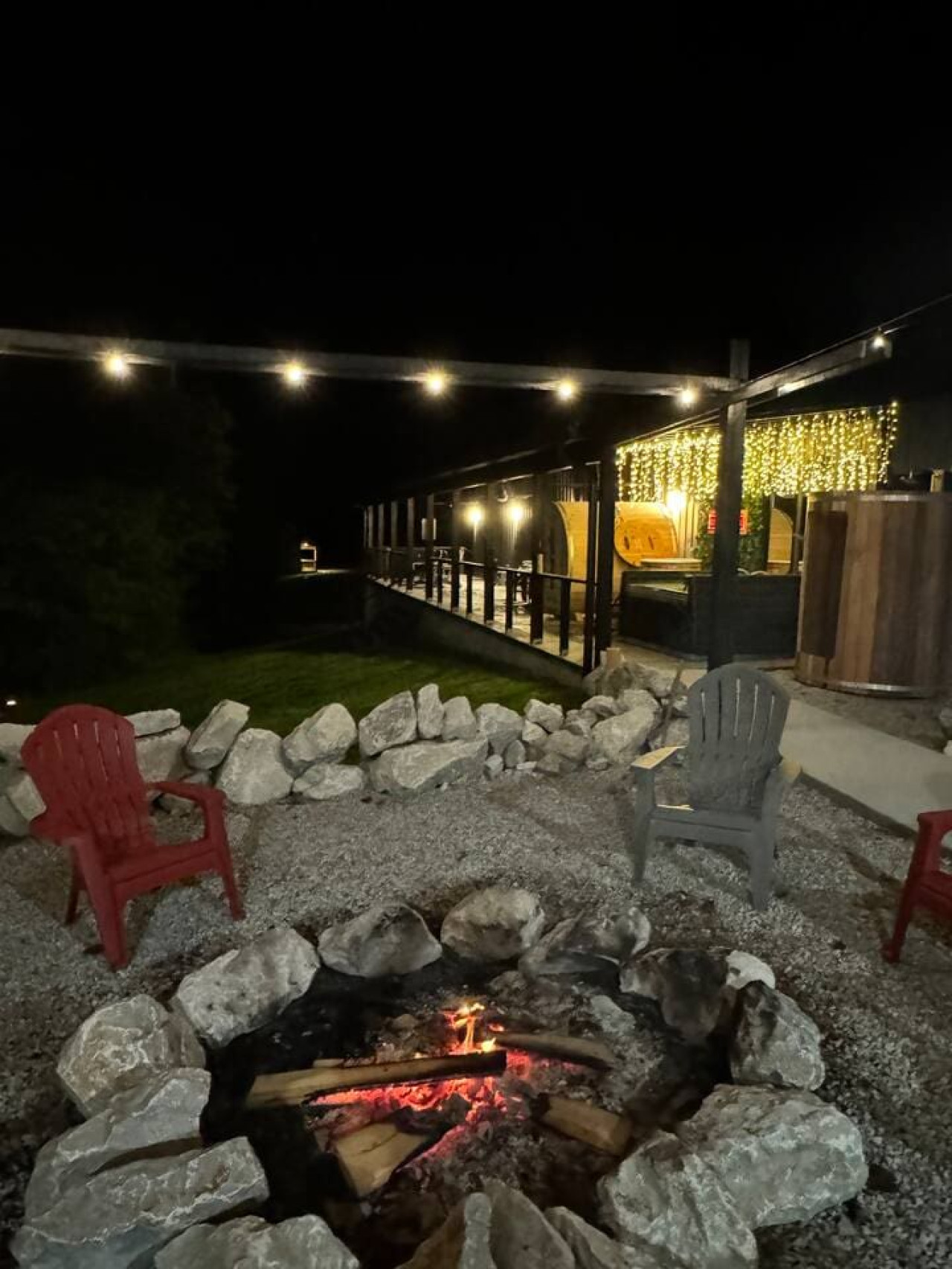 There are two other TreeTop cottages nearby and would make a great getaway for 3 couples to book together, but each have their own privacy. There is a large shared firepit area close to the bathrooms as well as a covered community gathering space.